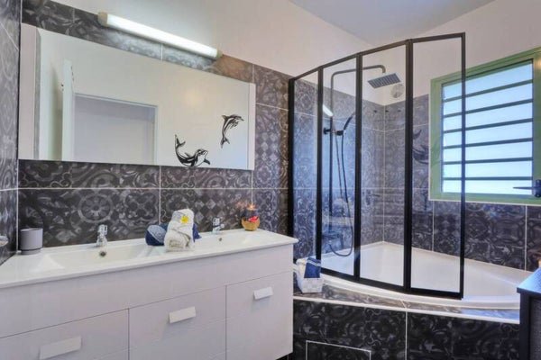 - Une salle de bain avec baignoire d'angle